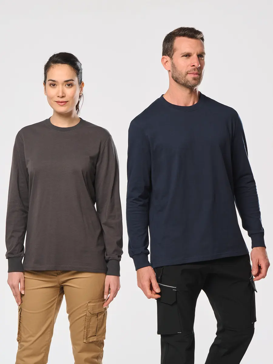 Umweltfreundliches Unisex-T-Shirt mit langen Ärmeln. Designed To Work