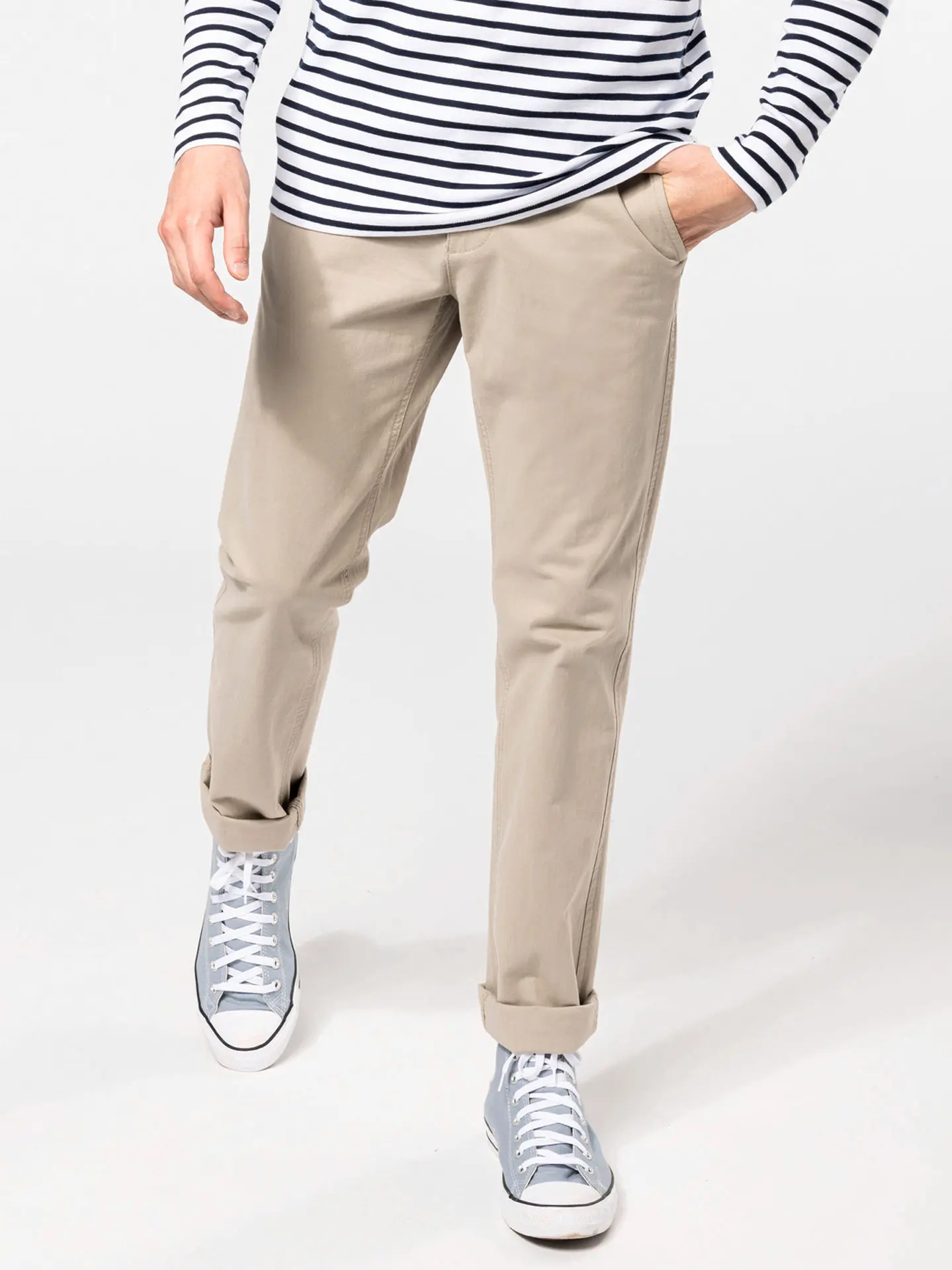Paired with a blazer for a chic ensemble, or with a sweatshirt and trainers for a more casual look, one of the advantages of a chino is that it allows you to put together a variety of outfits and adopt very different looks, all while reusing the same item!