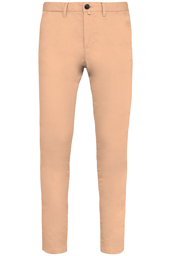 - Un chino couleur pêche dans la tenue de travail d’une épicerie branchée : confortable pour les équipes et rassurant pour les clients