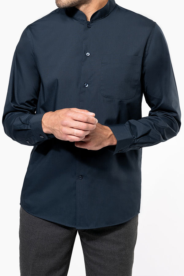 Prenons le col mao par exemple avec la chemise Kariban K515 top: il casse le côté très classique de la chemise, pour créer le fameux style décontracté – habillé que l’on voit de plus en plus !