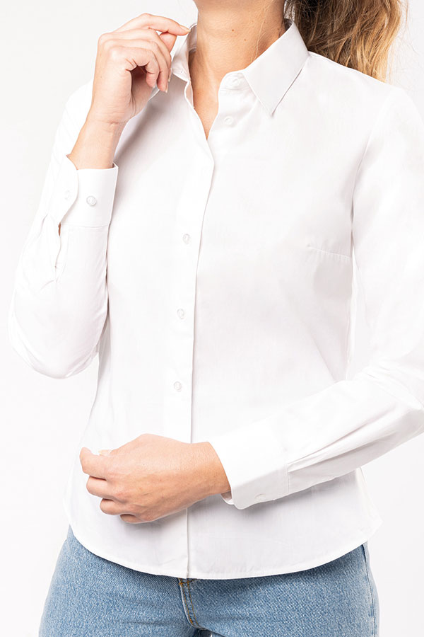 Si vous vous interrogez sur la forme à privilégier, la classique coupe droite est une valeur sûre : légèrement ample mais bien taillée, elle s’adapte surtout à toutes les morphologies. Autre option si vous cherchez du confort et de l’esthétique : la chemise pour femme K538 de Kariban. Confortable et élégante, son tissu nouvelle technologie sans repassage sera parfait pour un entretien facilité !